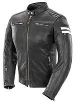 '- Piel de vacuno teñida en tambor de 1,0 a 1,2 mm con costuras superiores, diseñada específicamente para un ajuste relajado - Bolsillos para protecciones opcionales en hombros, codos y espalda - Forro acolchado con cremallera en toda la manga - 2 bolsillos interiores utilitarios - 4 bolsillos exteriores - Neopreno ajustable cuello mandarín forrado - Cintura y puños ajustables - Solapa de tormenta de 1.5"" en la cremallera principal - Cremalleras YKK en todo el exterior - Sutiles distintivos tono sobre tono - Amplias franjas reflectantes