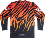 La camiseta de motocross Icon Rad Dawn está diseñada pensando en el flujo de aire máximo. Su chasis de malla asegura que te sientas fresco mientras conduces. Los gráficos sublimados, que incluyen logotipos de patrocinadores al estilo MX, nunca se desvanecerán, incluso después de múltiples lavados. Disfruta de un ajuste clásico de jersey de motocross que proporciona comodidad y estilo sobre la motocicleta.